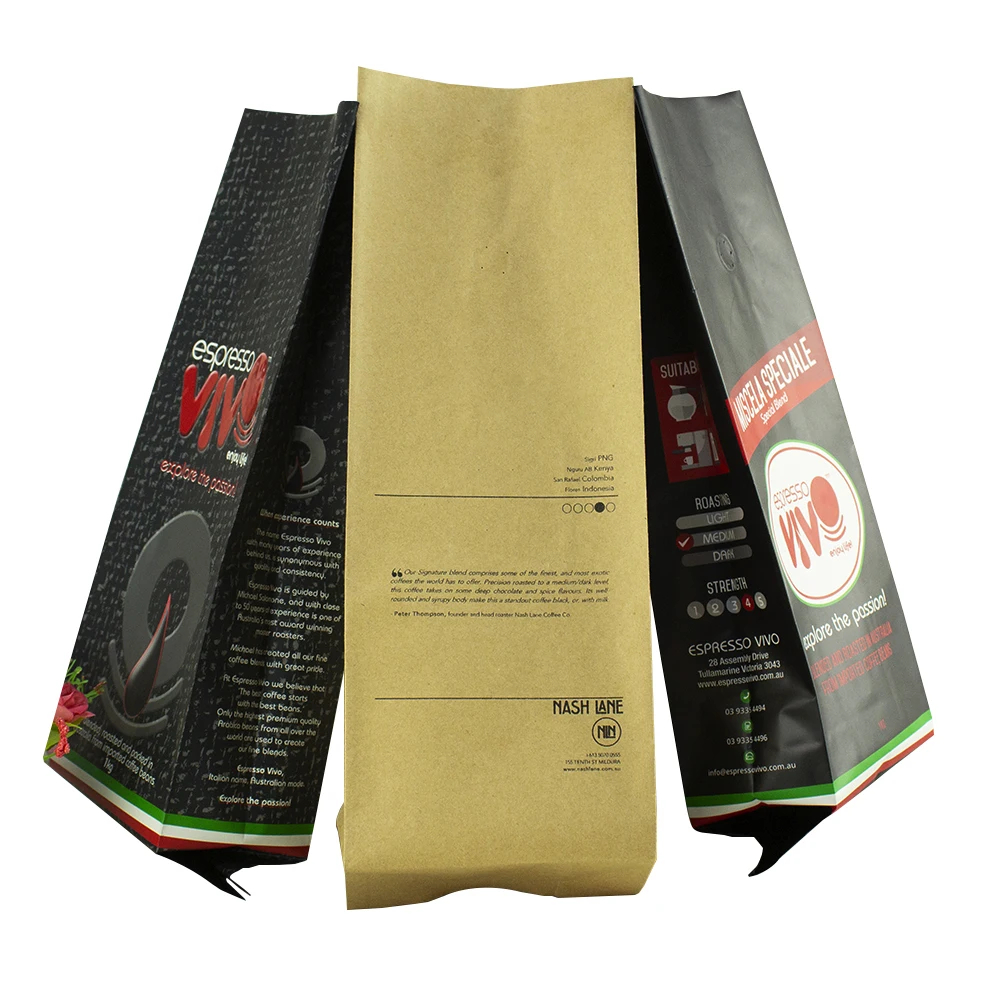 1 Kilogram Coffee Bag Side Gusset Tin Tie Kraft Coffee Bag Aluminum Foil Custom Printed Coffee Bags