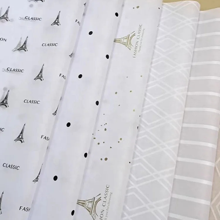 17 Gsm clear MG Tissue Paper Acid-free Wood Puip Custom Printed logo Clothing Wrapping Paper for Shoes Clothes Gifts Packaging