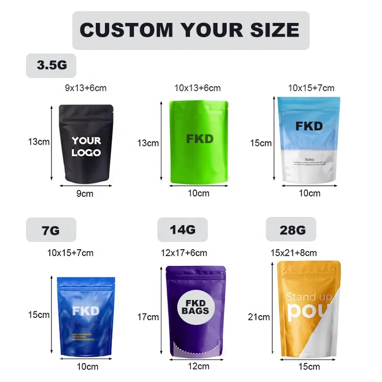3.5g 7g 14g 28g Custom Plastic Stand up Doypack Pouch Child Resistant Smell Proof 3.5 Grams Mylar Bags With Logo