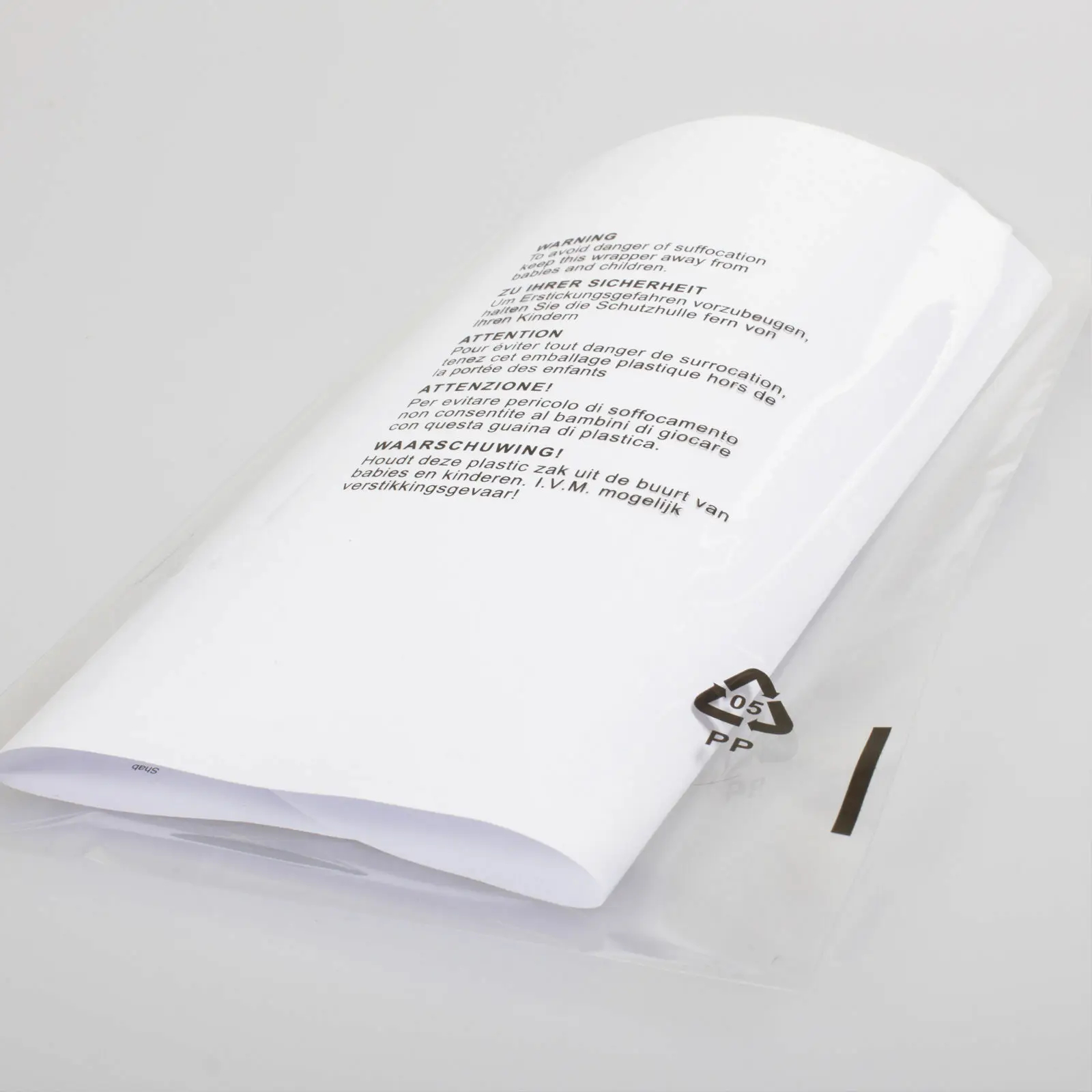 Clear Cellophane Self Sealing Bag Heat Sealing Opp Cello T-shirt Garment Clothing Plastic Packaging Bag with Suffocation Warning