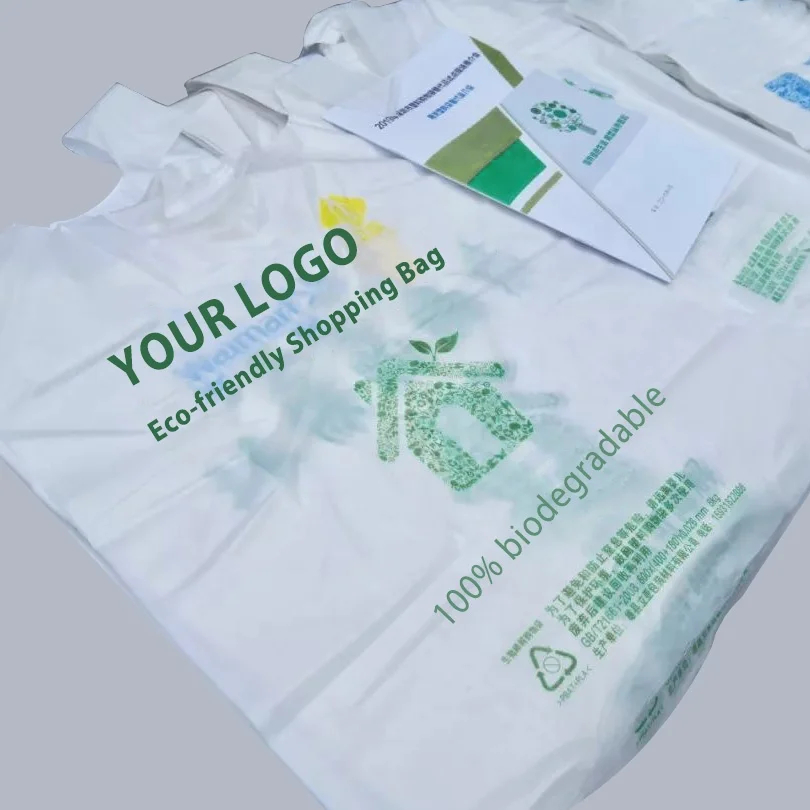Cornstarch Bioplastic T-Shirt Bag Biodegradable Bags Custom Printed Biodegradable PLA PBAT Compostable Plastic Bags