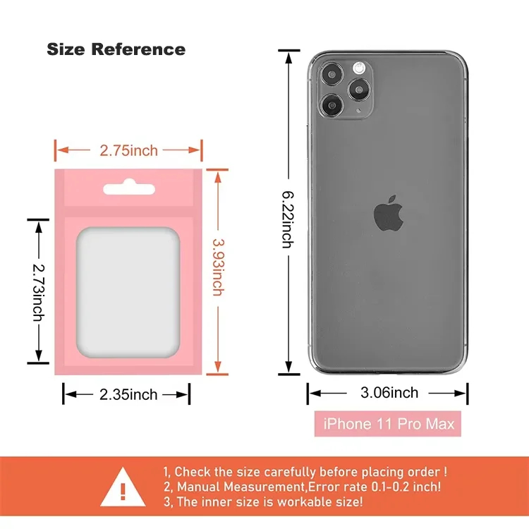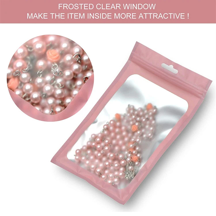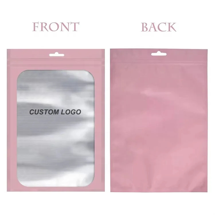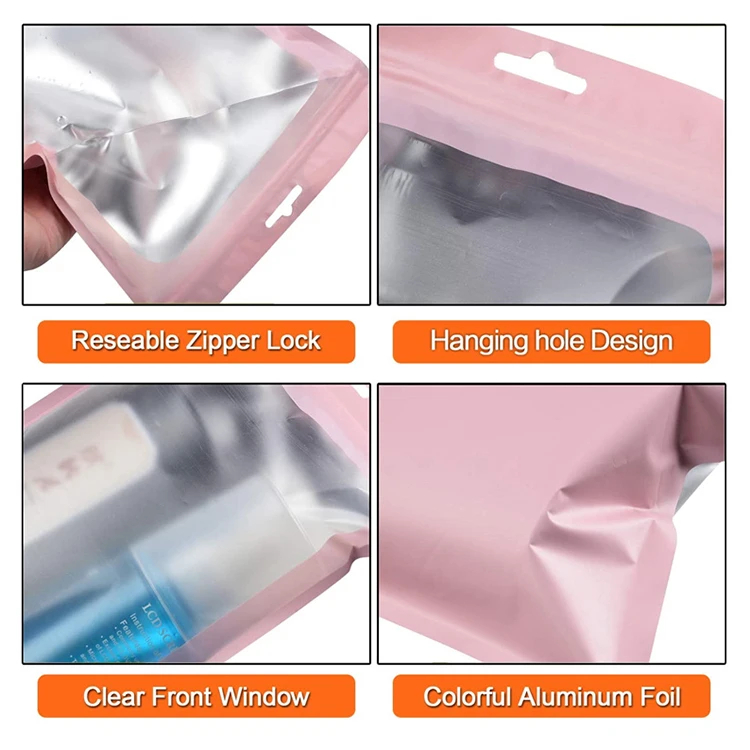 Custom 3 Side Seal Pouch Pearl Aluminum Foil Mylar Bags Smell Proof Plastic Clear Front Zip Lock Display Bag with Hang Hole