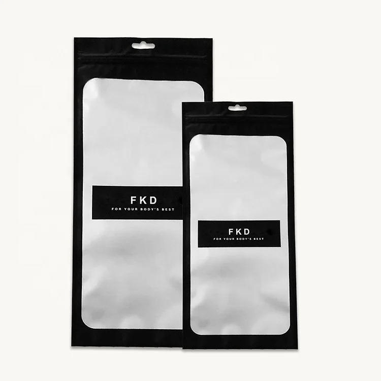 Custom Logo Black Holographic Underwear Packing Zipper Pouch Foil Ziplock Hair Band Belly Band Packaging Plastic Bags