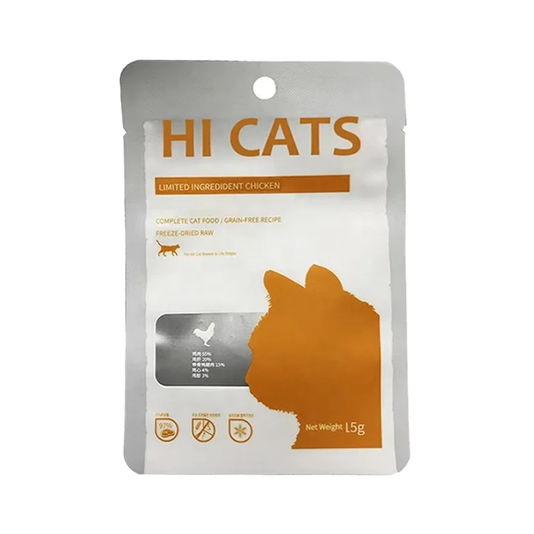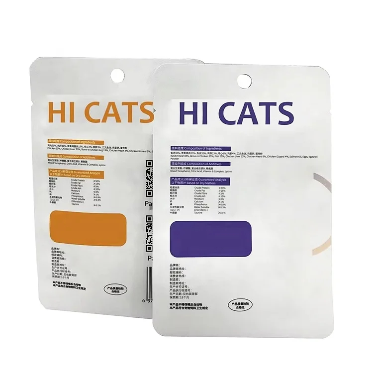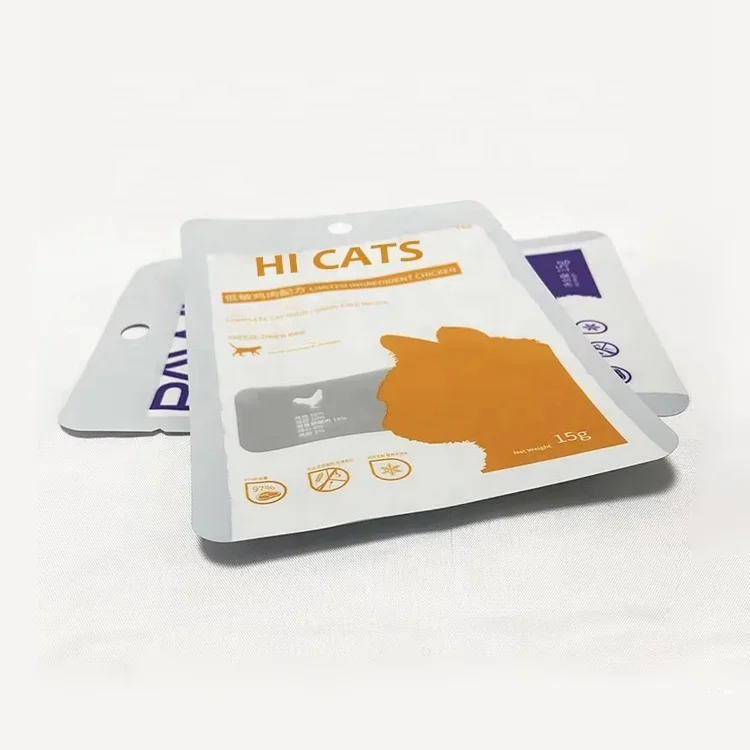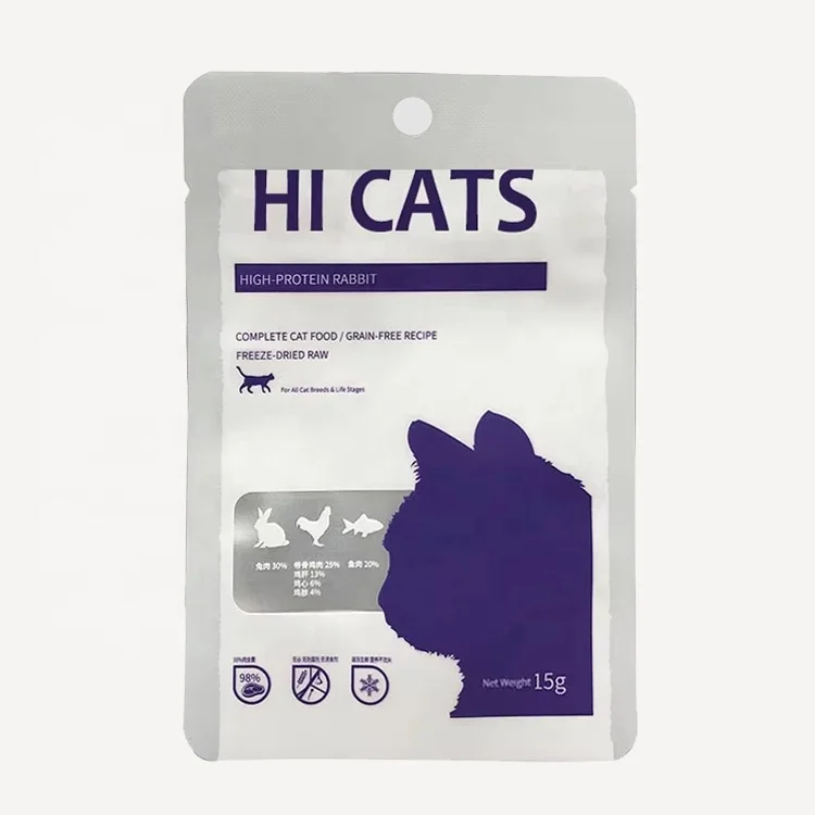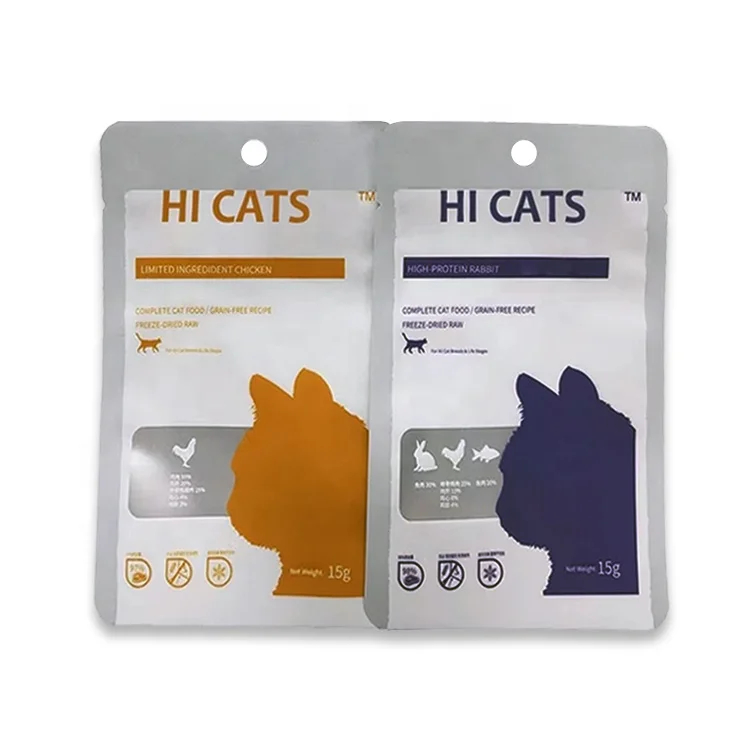 Custom Logo Print Resealable Plastic Cat Treats Food Bags Smell Proof 3 Side Seal Bag With Clear Window