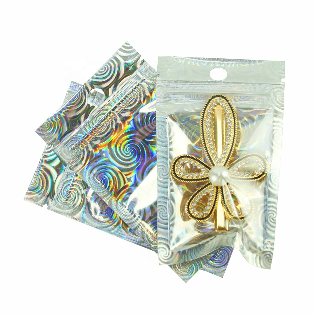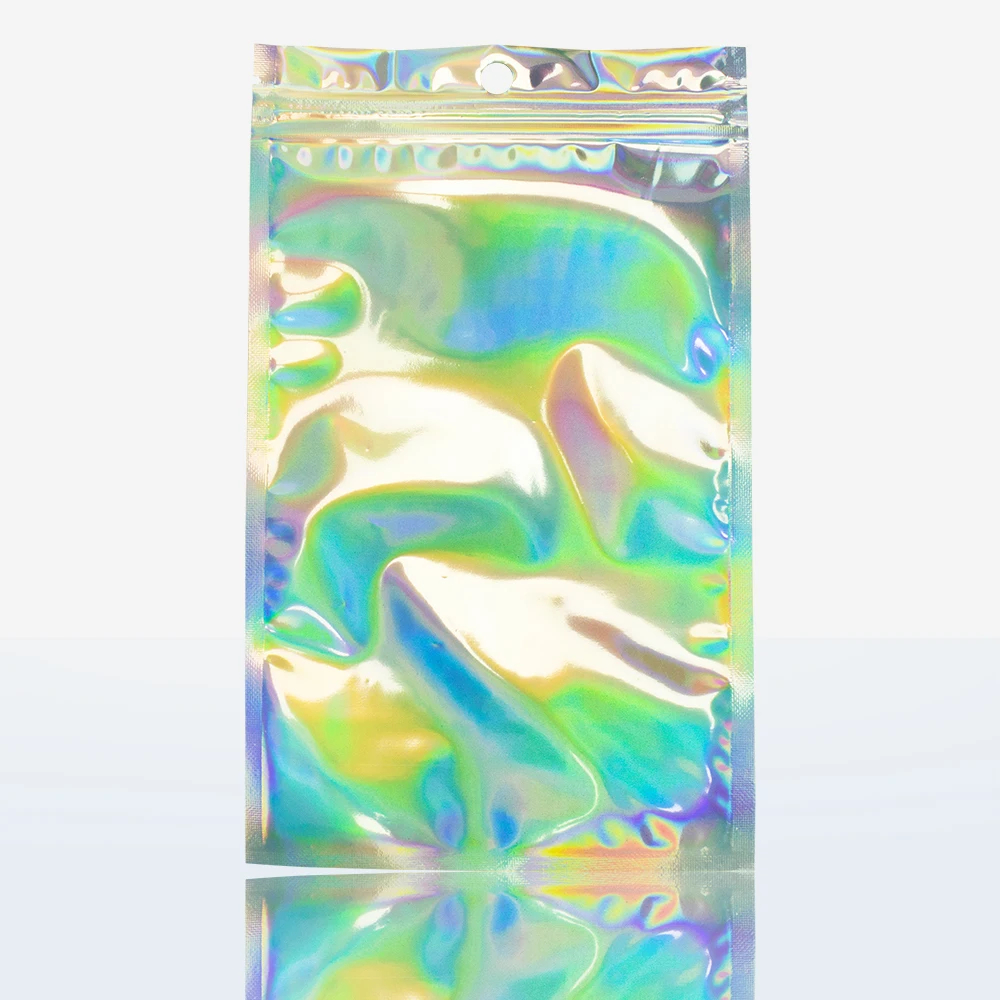 Custom Logo Resealable Smell Proof Aluminum Foil Edible Small Zip Lock Plastic Packaging Mylar Hologram Bags with clear Window