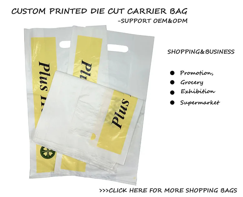 Custom Print Logo High Quality Plastic Shopping Bag HDPE Plastic Packaging Die Cut Handle Carry Bag