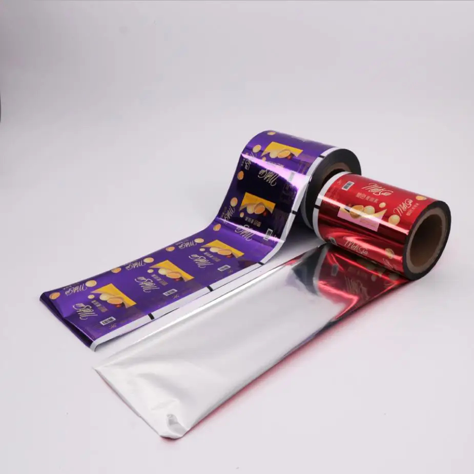 Custom Printed Aluminum Foil Film Flexible Soft Food Packaging Heat Seal Plastic Roll Film for Biscuit Sachet Automatic Packing
