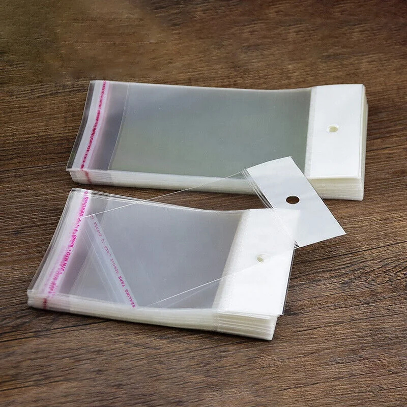 Custom Printed Clear Plastic Display Bags Self Adhesive Sealed Cellophane OPP CPP Pouch Bags With Euro Slot Hanging Hole