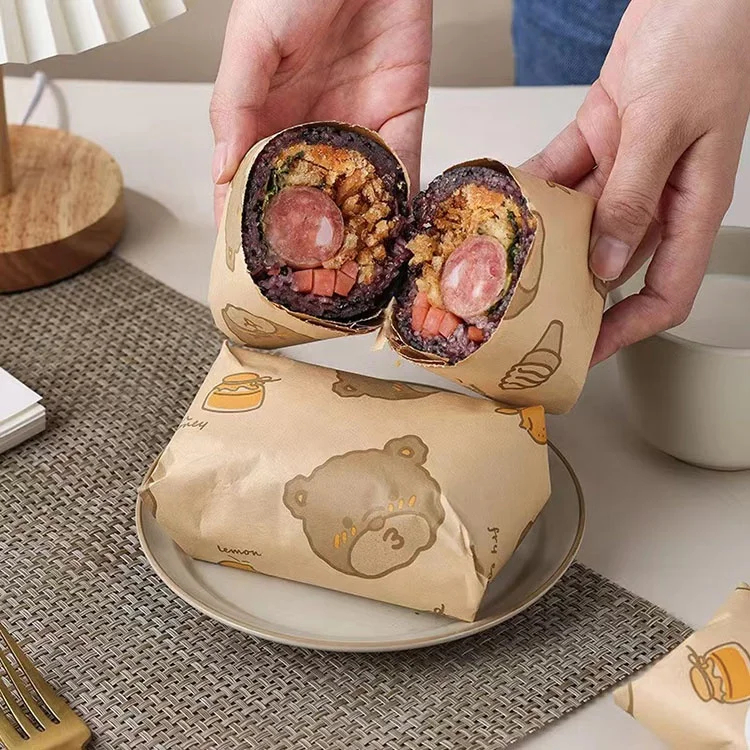 Custom Printed Deli Sushi Shawarma Sandwich Burger Wrapping Packaging Wax Fast Food Paper