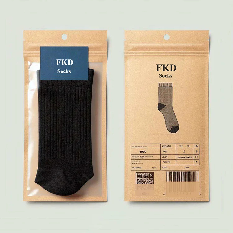Custom Printed Eco-friendly Underwear Packaging Paper Bag Biodegradable Kraft Paper Zipper Pouch with Clear Window for Socks