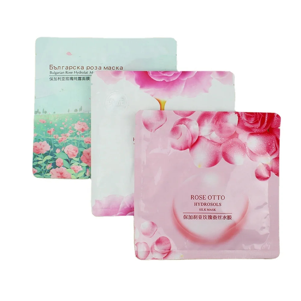 Custom Printed Facial Mask Sheets Packing Bags Aluminum Foil Cosmetic Packaging Small 3 Side Seal Pouch with Customized Design