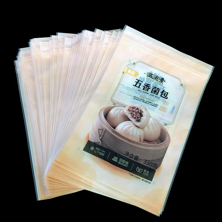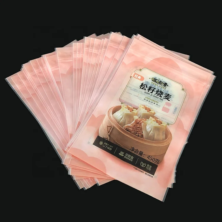 Custom Printed Food Packaging Plastic Zip Bag Dumpling Seafood Frozen Food Packaging 3 Side Seal Bags Mylar Ziplock Plastic Bag