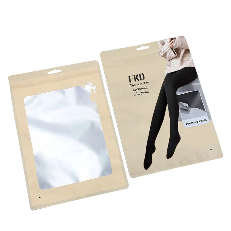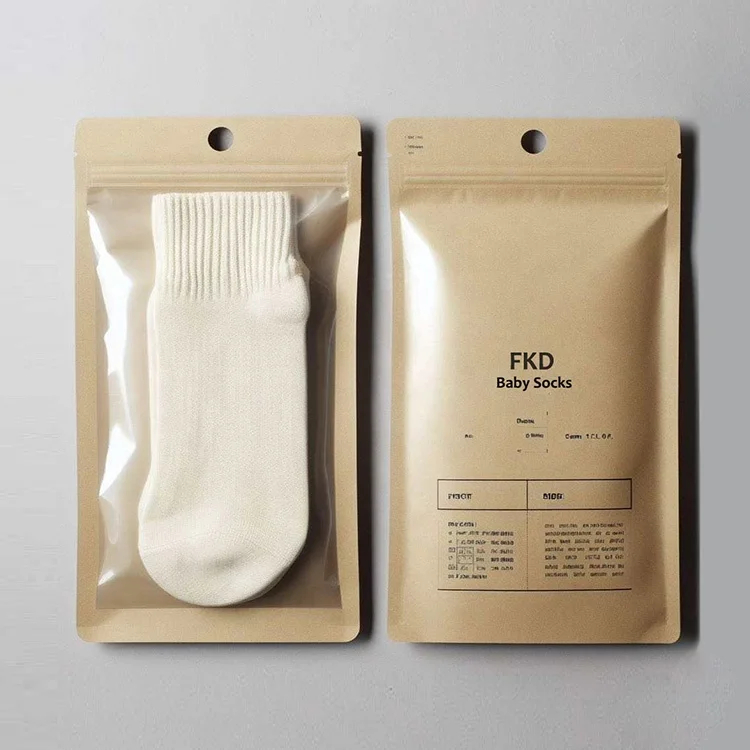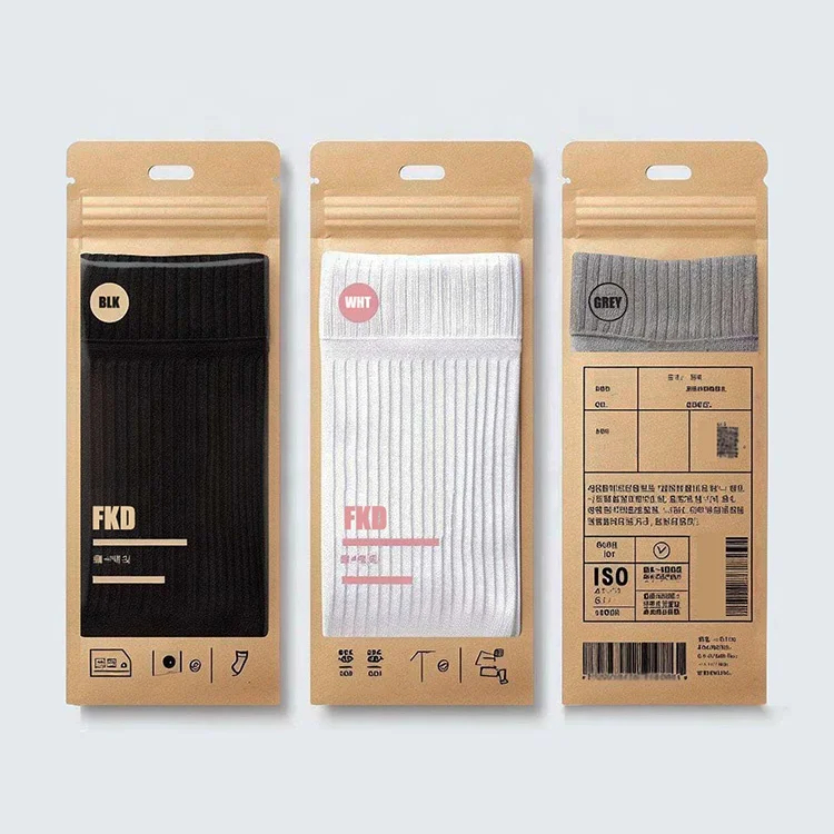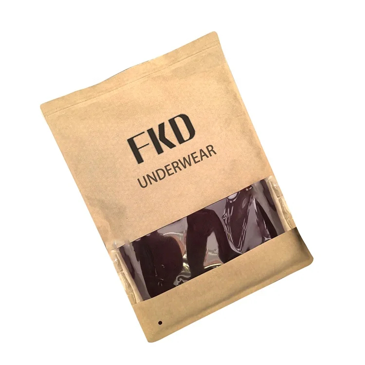 Custom Printed Kraft Paper Ziplock Bags Pants Underwear Socks Packaging Kraft Paper Zipper Pouch Bags with Clear Window