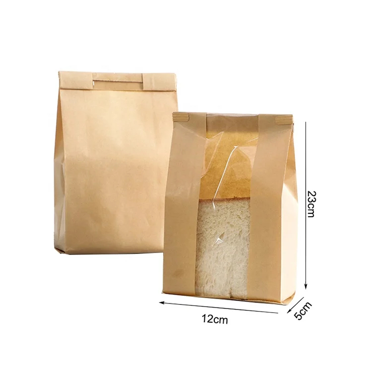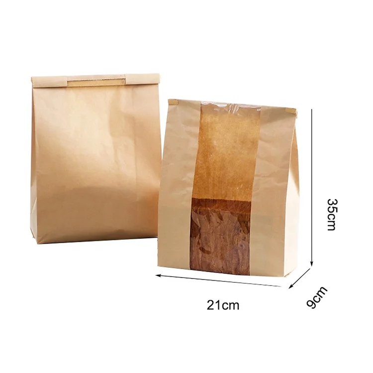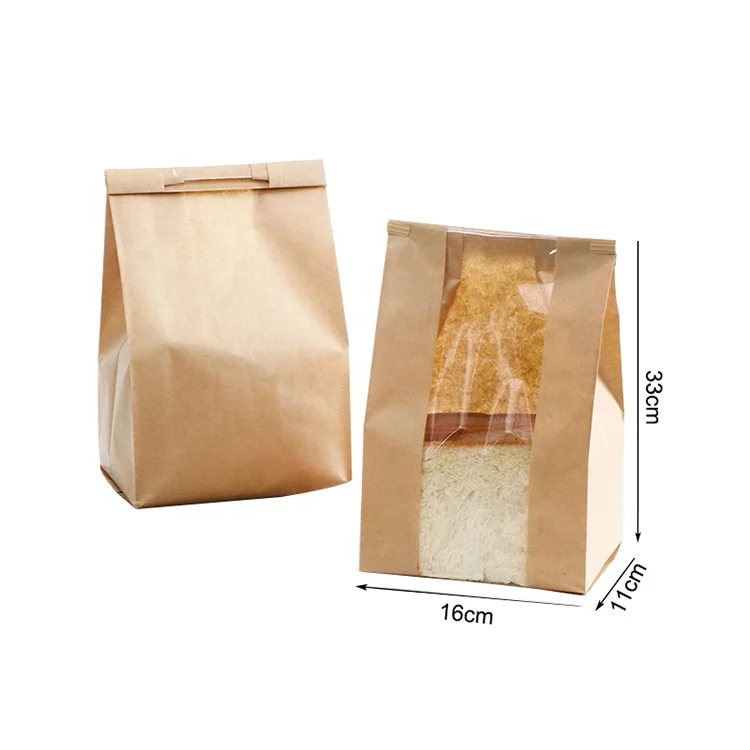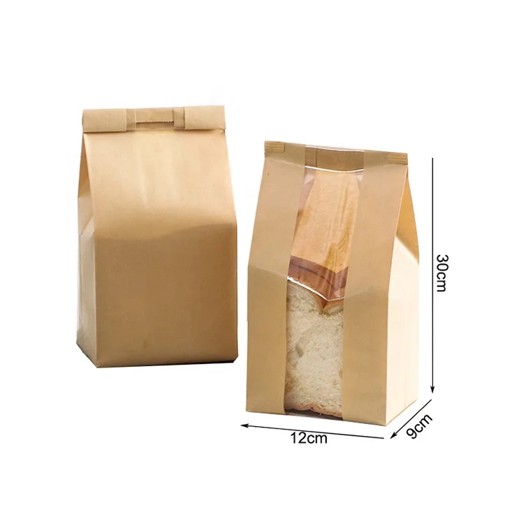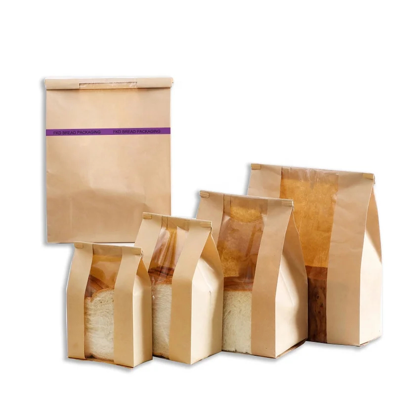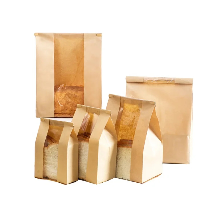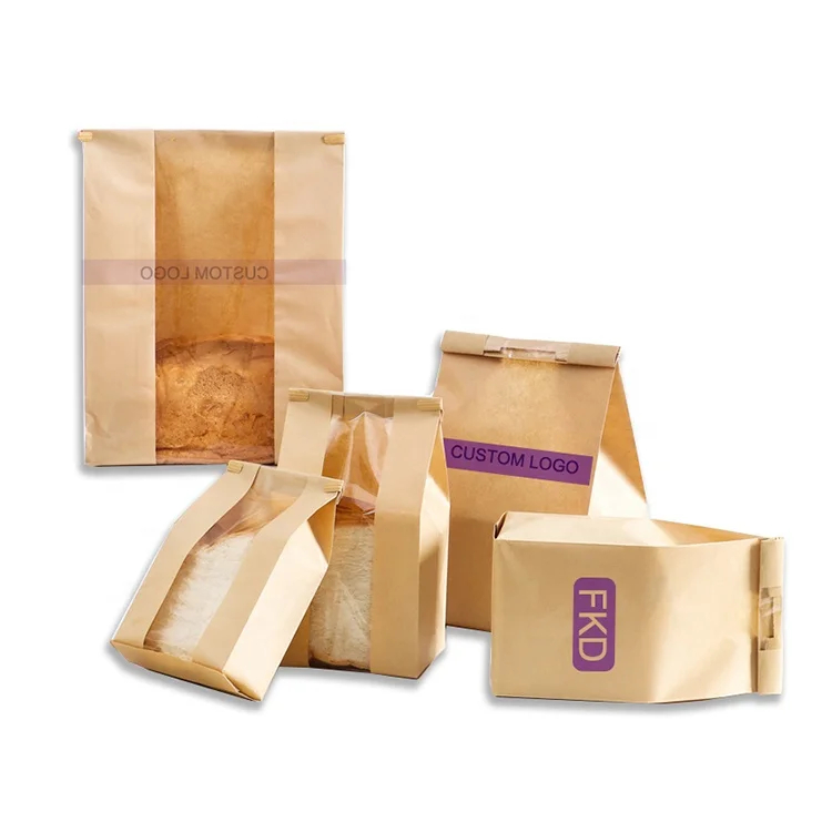 Custom Printed Paper Bread Bags Sourdough Bread Packaging Kraft Paper Bakery Bags With Window Used for Cookies & Snacks Storage