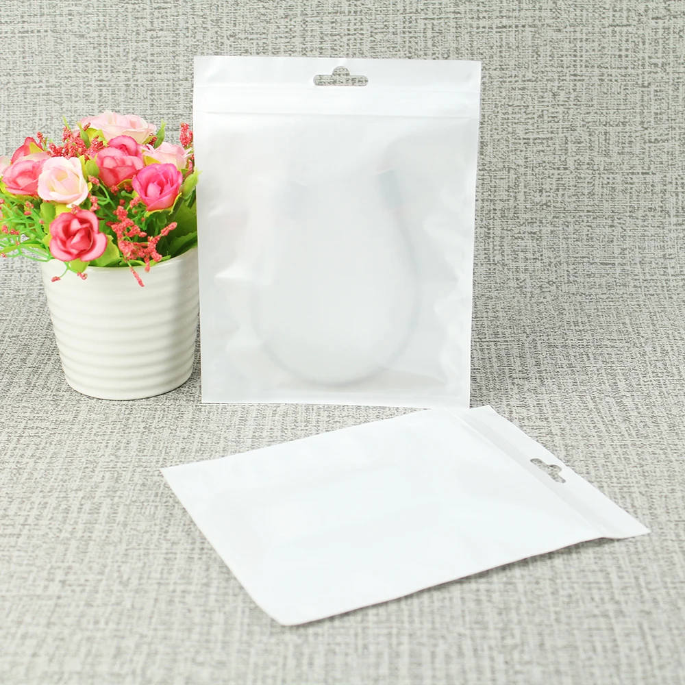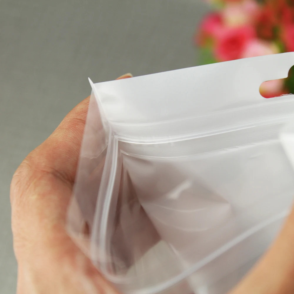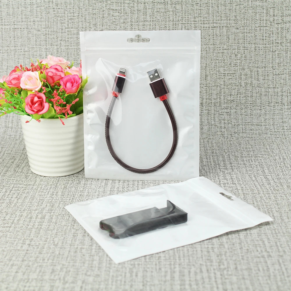Custom Printed Plastic Bags 3 Side Seal Pouch White Pearl Film Back Transparent Front Perforated Polyester Zipper Packaging Bag