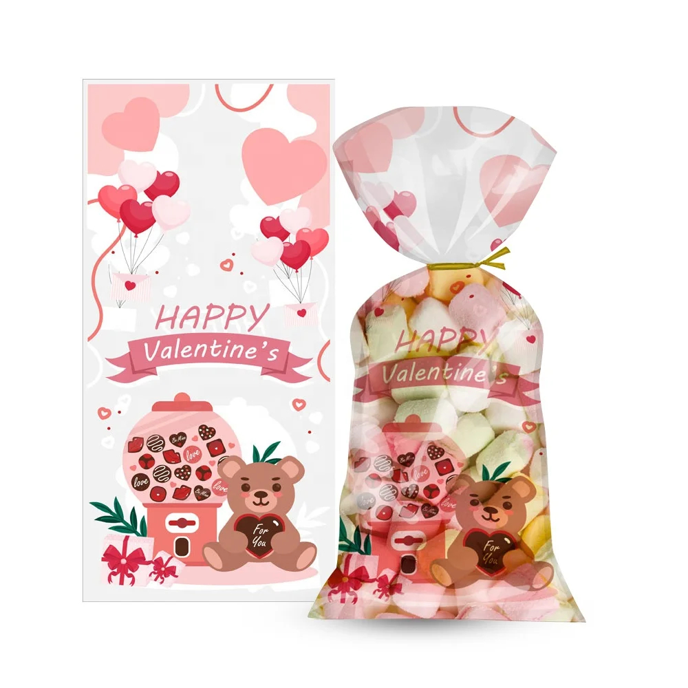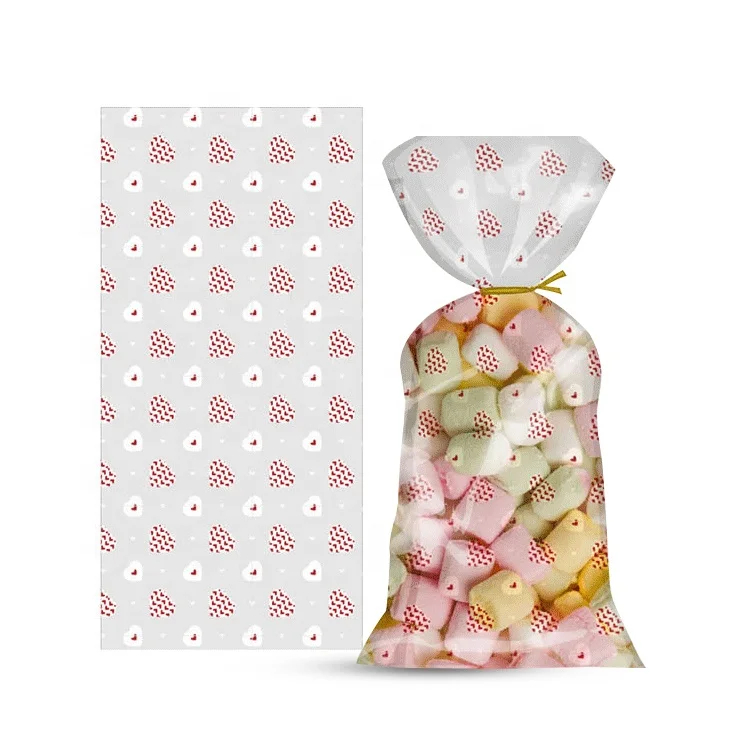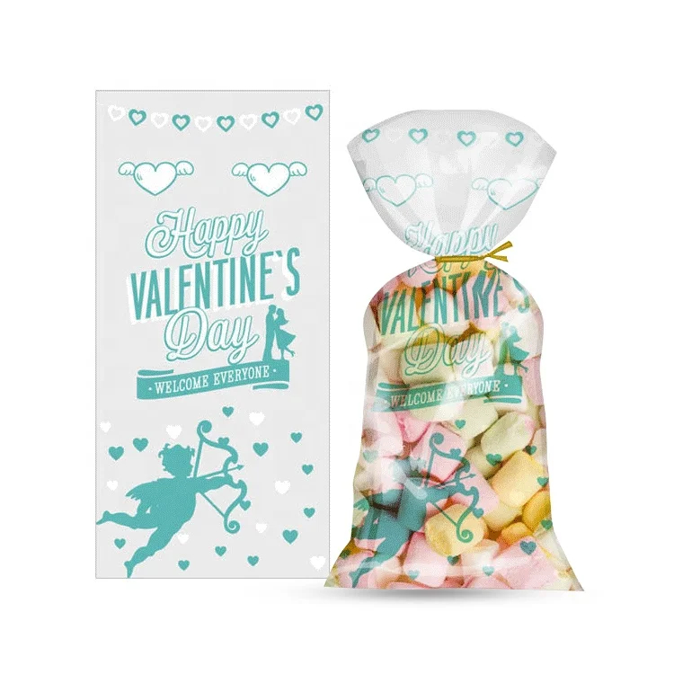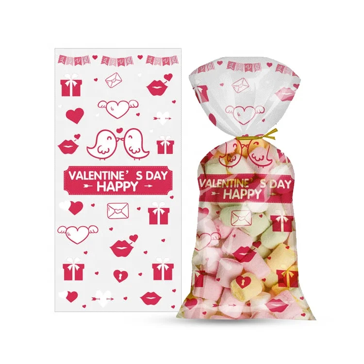 Custom Printed Plastic Bags OPP CPP Single Layer Bags with Twist Ties Transparent Valentine's Day Treat Candy Gift Bags