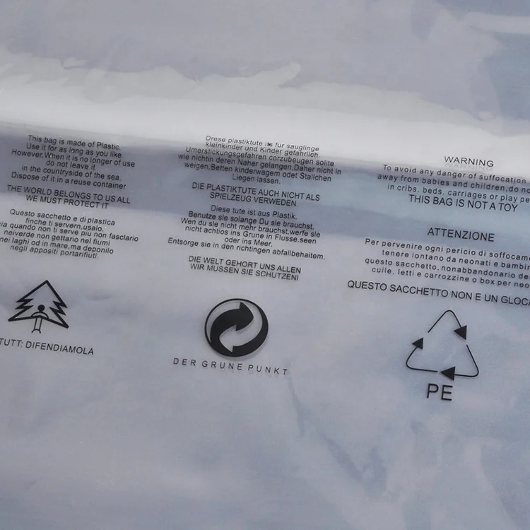 Custom Printed Plastic Bags Transparent Poly Bags with Suffocation Warning Clothing Packaging Self Adhesive Bags for Business