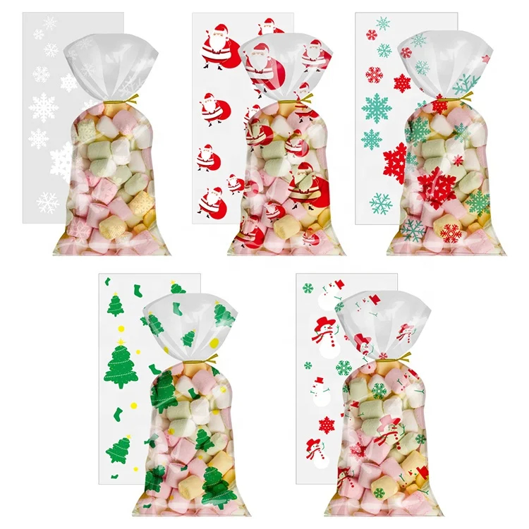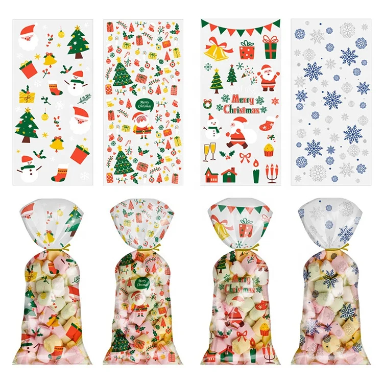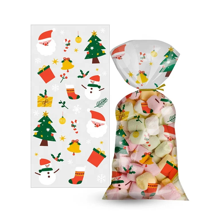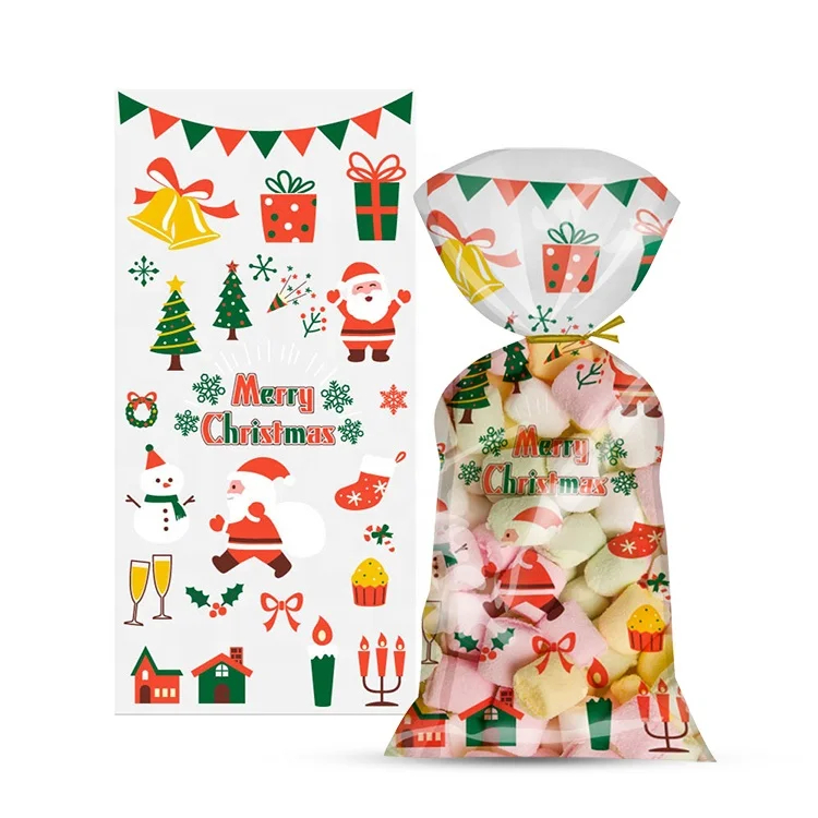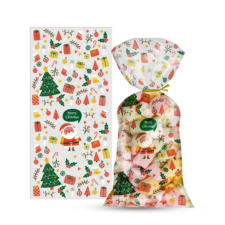 Custom Printed Plastic Christmas Presents Bags OPP Candy Packaging Bag Transparent Candy Wrapping Cellophane Xmas Gifts Bags