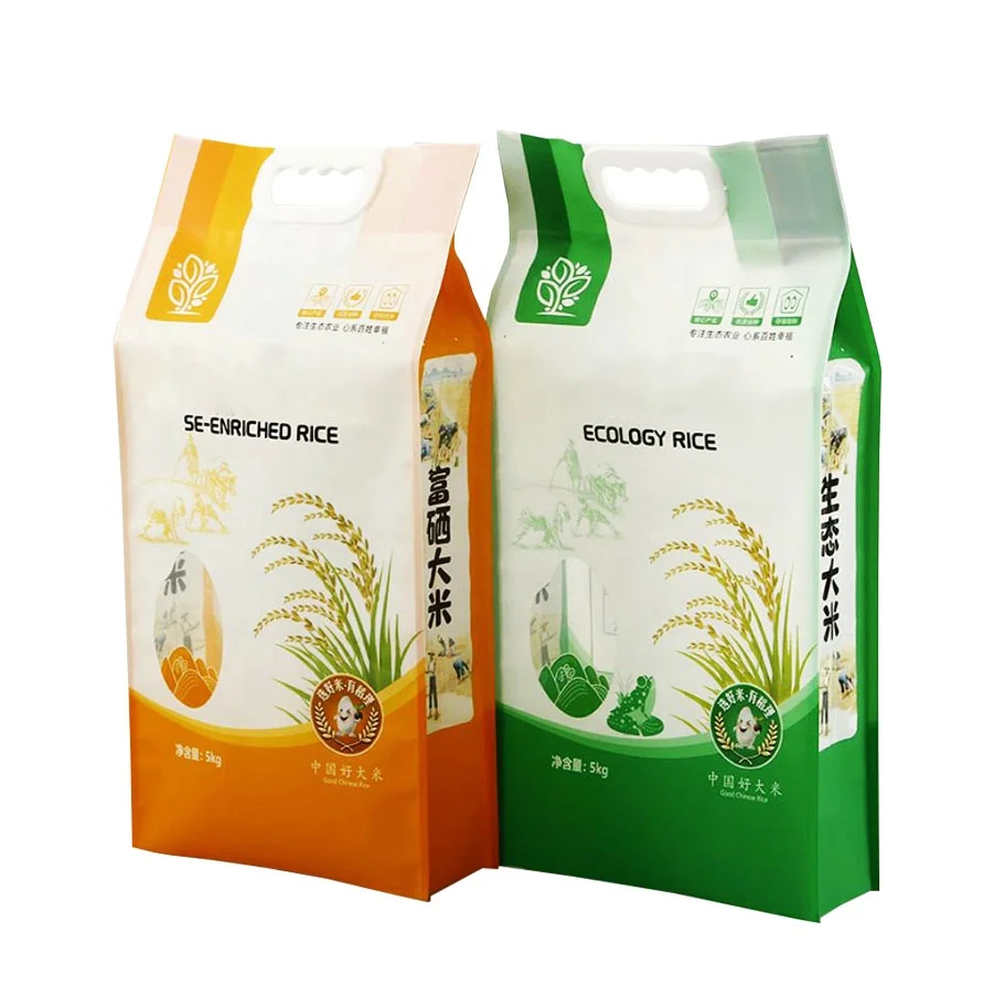 Custom Printed Plastic Food Packaging Bag Mylar Side Gusset 1kg 2.5kg 5kg 10kg Rice Packaging Vacuum Bags