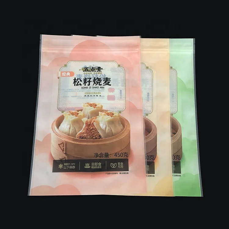 Custom Printed Plastic Frozen Food Packaging 3 Side Seal Pouch Ziplock Mylar Reusable Frozen Dumpling Food Storage Bags