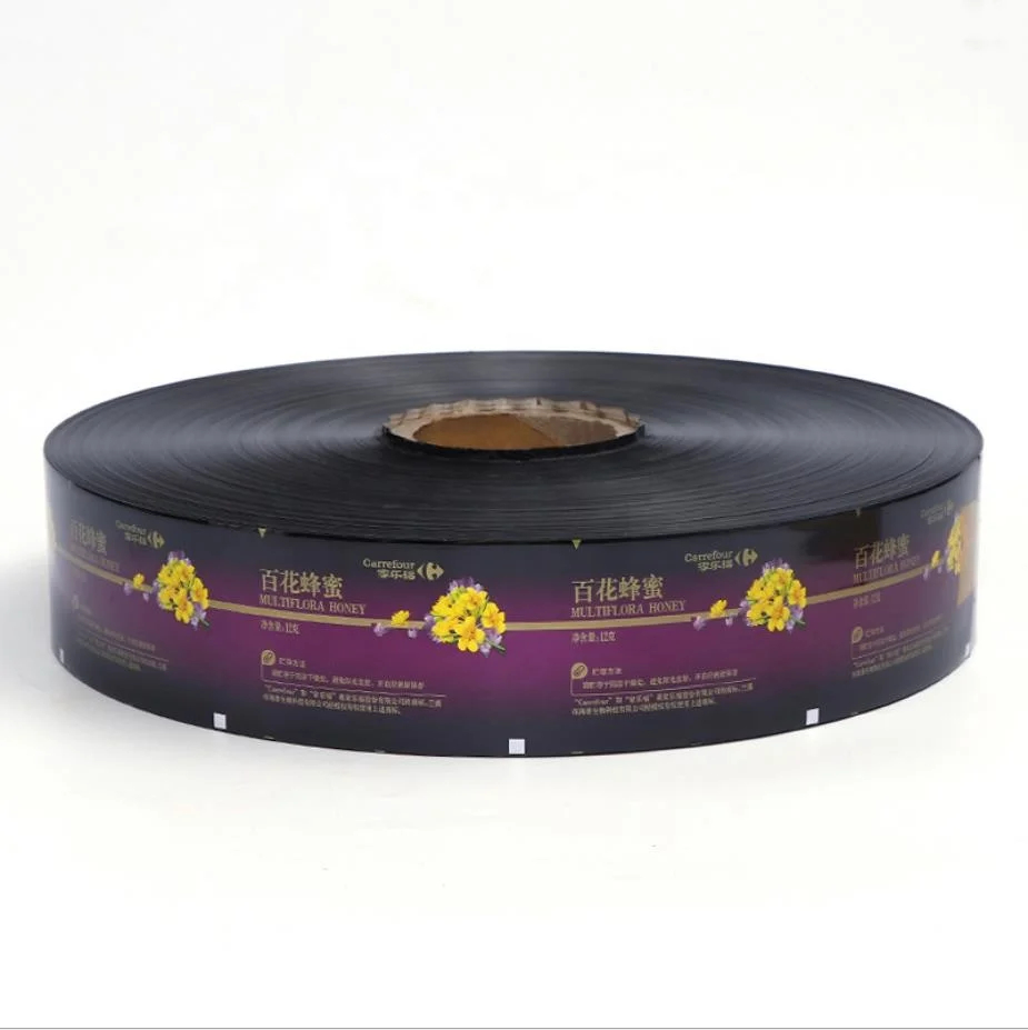 Custom Printed Plastic Honey Packaging Film Roll Aluminum Foil Laminated Packaging Roll Film for Sauce Automatic Packing Machine