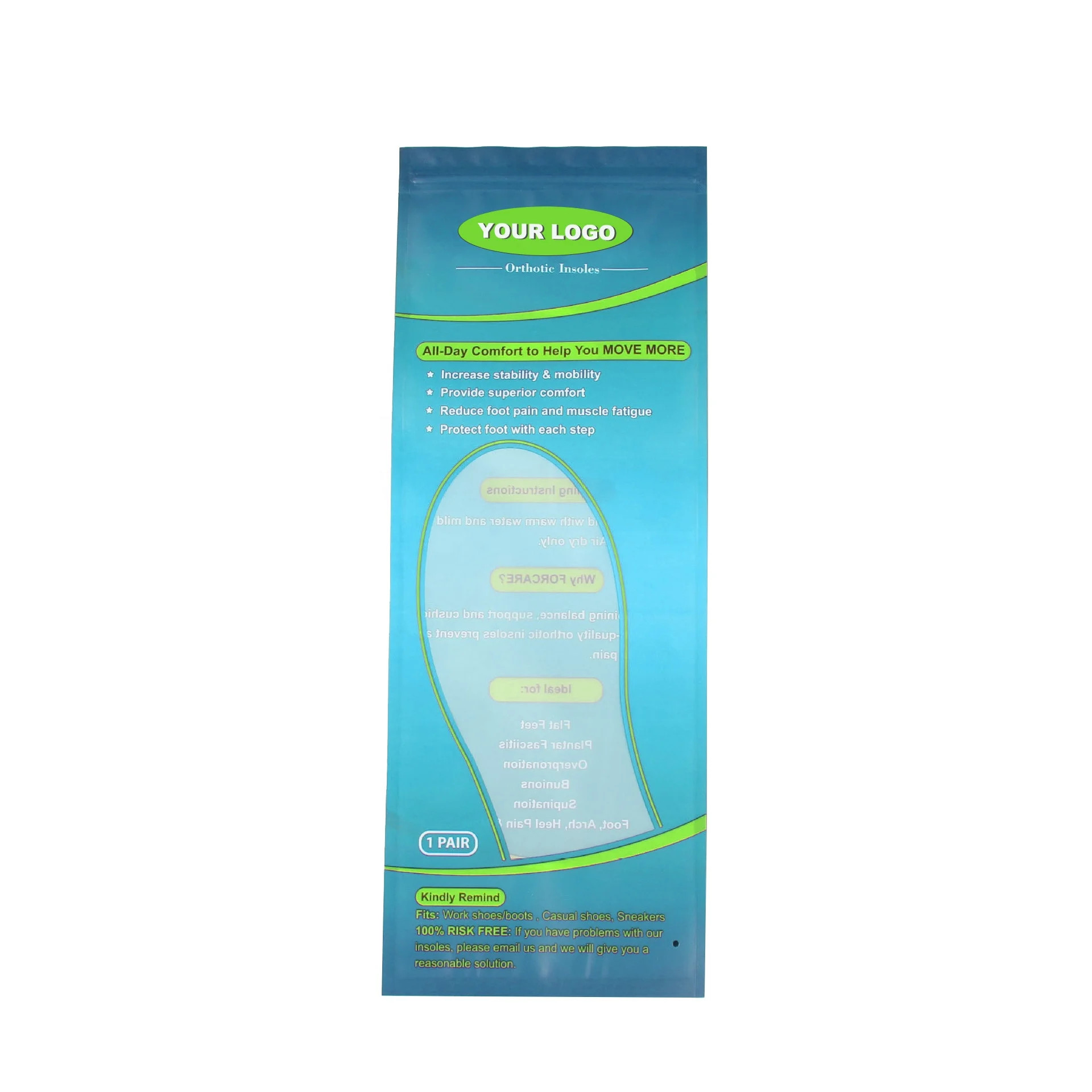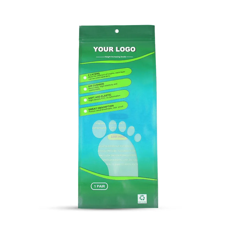 Custom Printed Plastic Mylar Bags High Quality 3 Side Seal Pouch Insoles Packaging Zip Lock Poly Bags with Hanging Hole