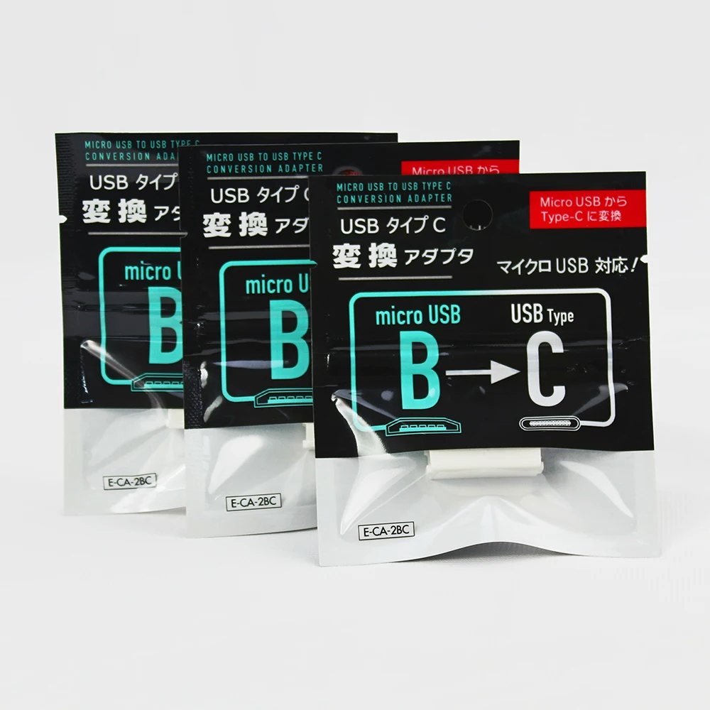 Custom Printed Plastic Mylar Bags Resealable 3 Side Seal Zipper Pouch Small USB Type-C Conversion Adapter Zip Packaging Bag