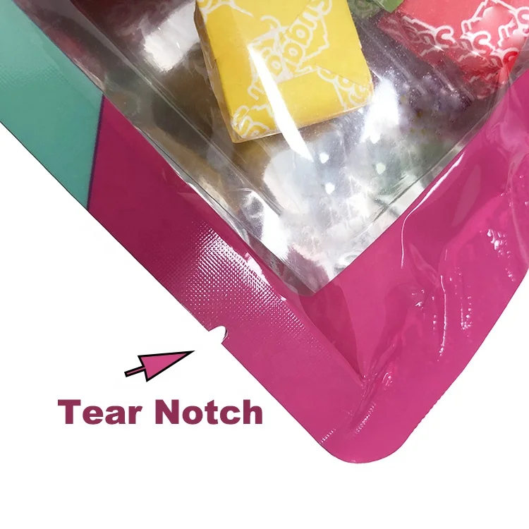 Custom Printed Plastic Mylar Packaging Bags 3 Side Seal Pouch Aluminum Foil Candy Sweets Nuts Packaging Bags with Clear Window
