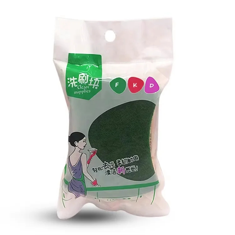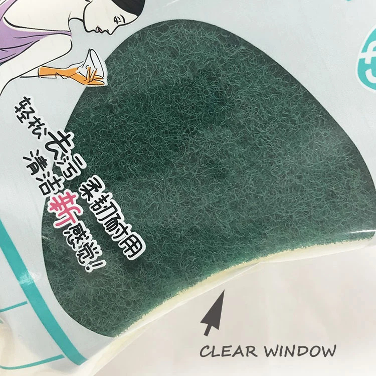 Custom Printed Plastic Packaging Bags 3 Side Seal Pouch with Clear Window Custom Logo Packaging Bags for Kitchen Sponge Mop