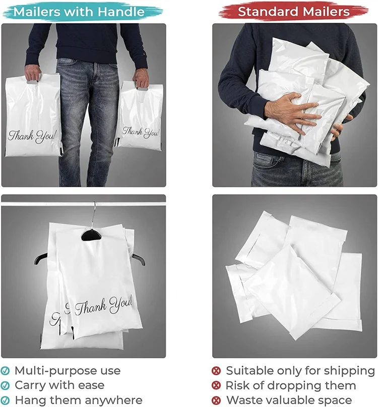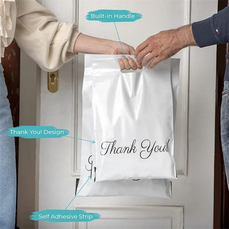 Custom Printed Plastic Shipping Bags Shipping Pouch Custom Plastic Poly Mailer Bag Thank You Mailing Bags With Die Cut Handle