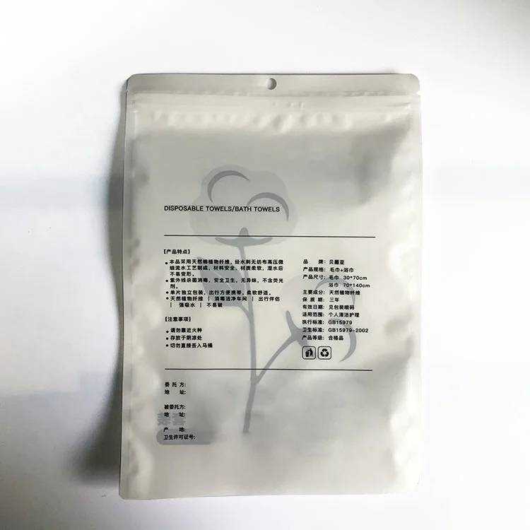 Custom Printed Plastic Zip Packaging Bags with Transparent Window Designed Hotel Bath Towels Packaging Bags
