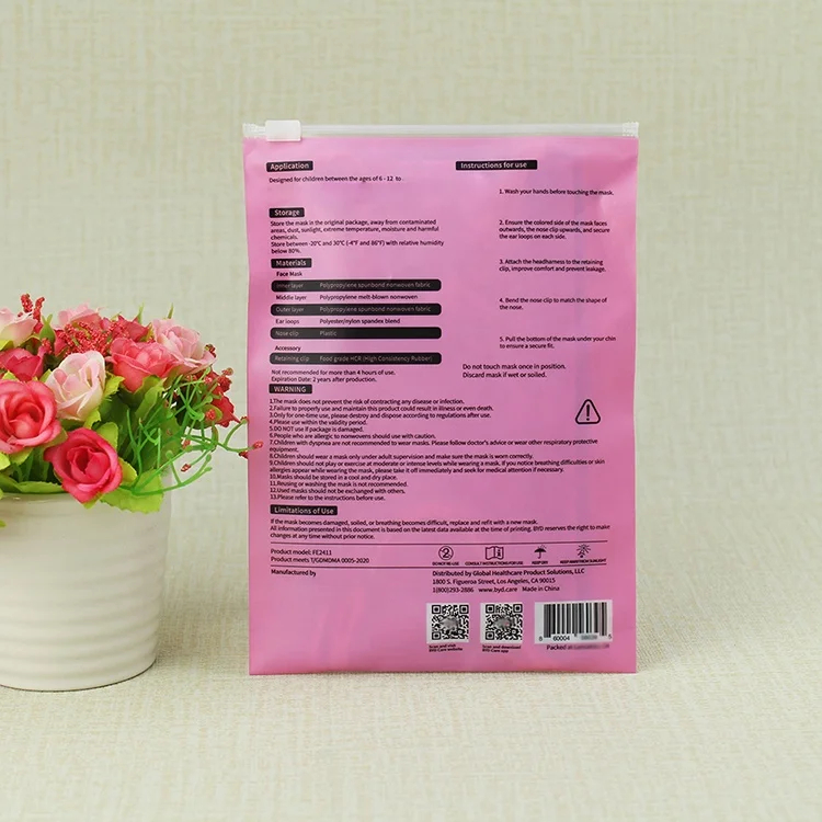 Custom Printed Plastic Ziplock Bag Girl Clothing Brand Packaging Bag Underwear Pink Mylar Zipper Pouch Bag with Clip