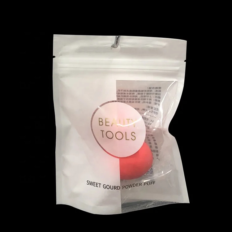 Custom Printed Plastic Zipper Pouch with clear Window Beauty Tools Powder Puff Compressed Facial Mask Ziplock Packaging Bags