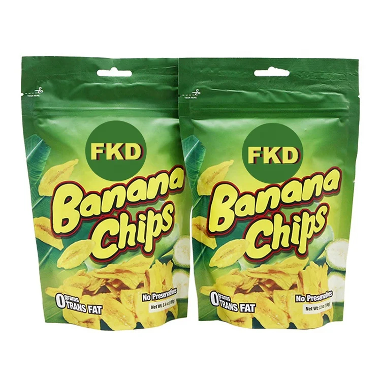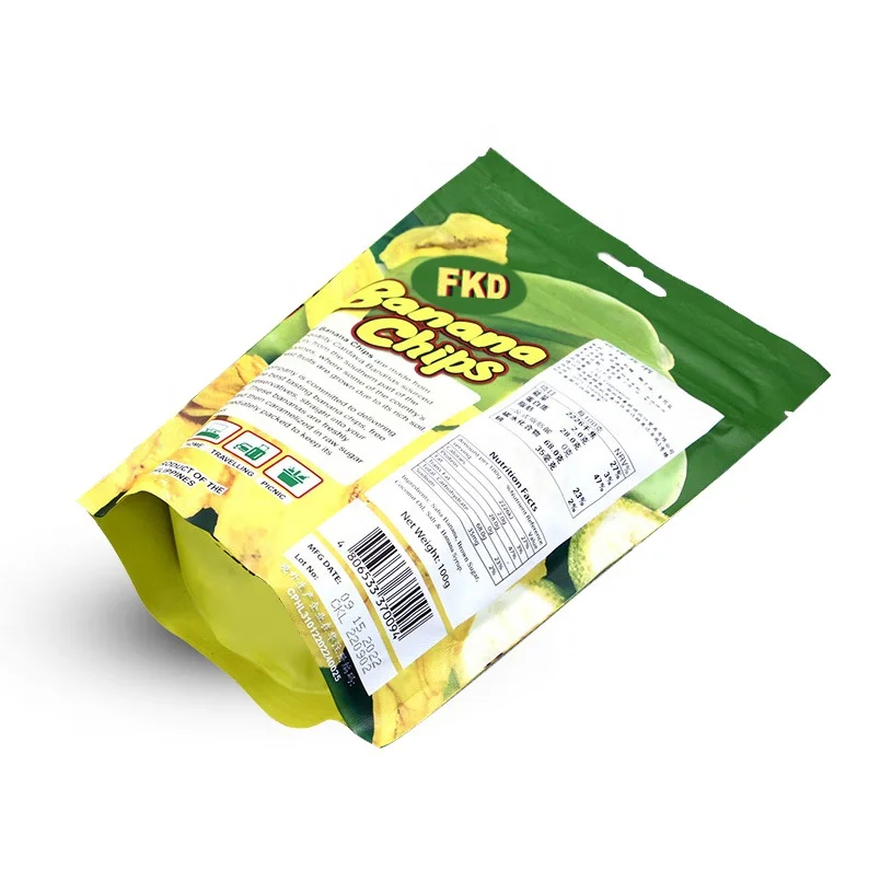 Custom Printed Resealable Stand up Pouch Zip Lock Banana Chips Packaging Bag Recyclable Aluminium Foil Food Packaging Bag