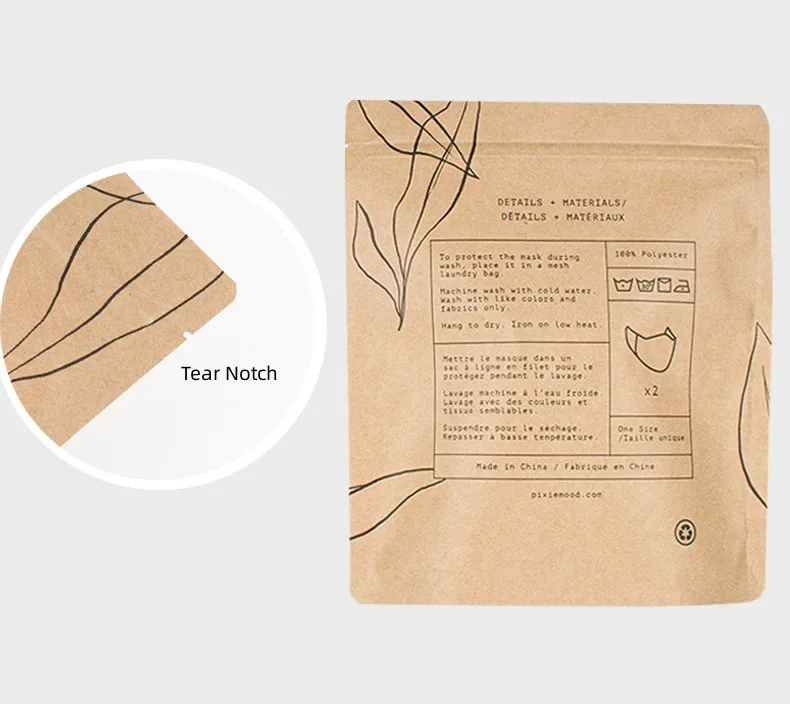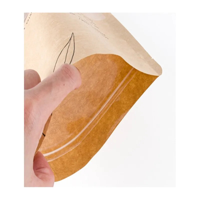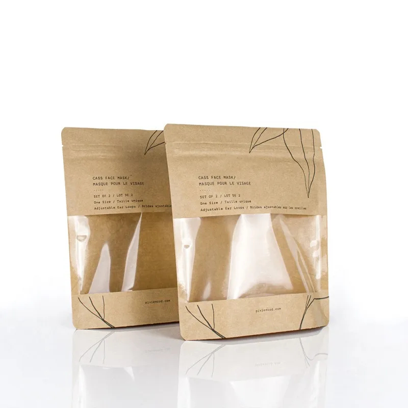 Custom Printed Standing up Pouch Ziplock Kraft Bag Food Grade Transparent Window Degradable Kraft Paper Zipper Packaging Bags