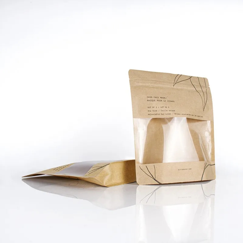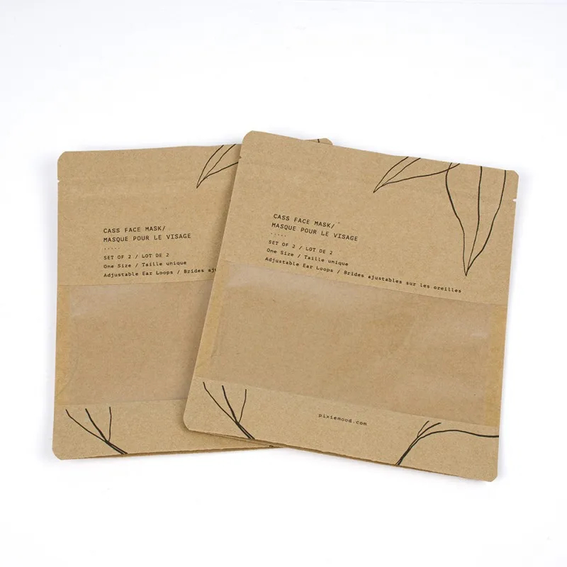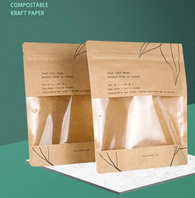 Transparent Window Degradable Kraft Paper Zipper Packaging Bags