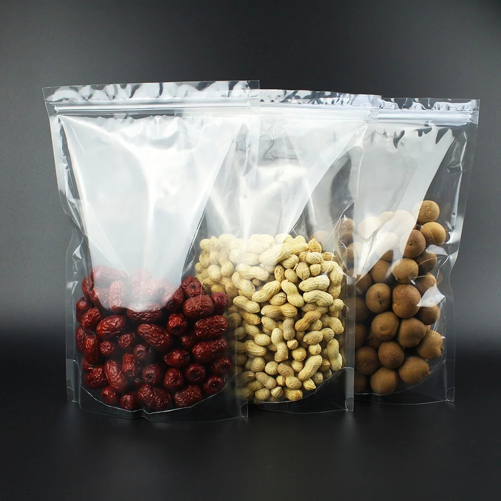 Custom Stand up Pouch Bag Polythene Mylar Ziplock Sealed Packaging Transparent Plastic Reusable Food Storage Bags
