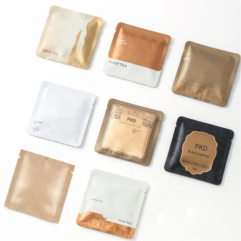 Custom Tea Packaging Sachet 3 Side Seal Bag Empty Tea Bags Small Sample Tea Coffee Packaging Bags