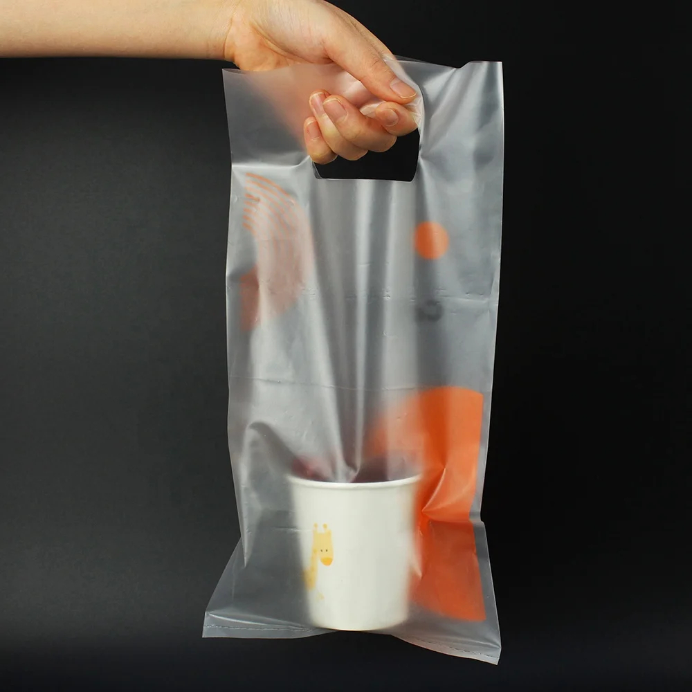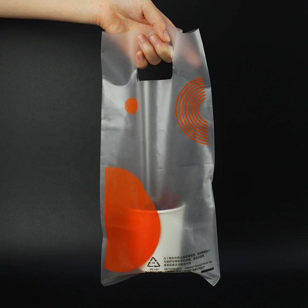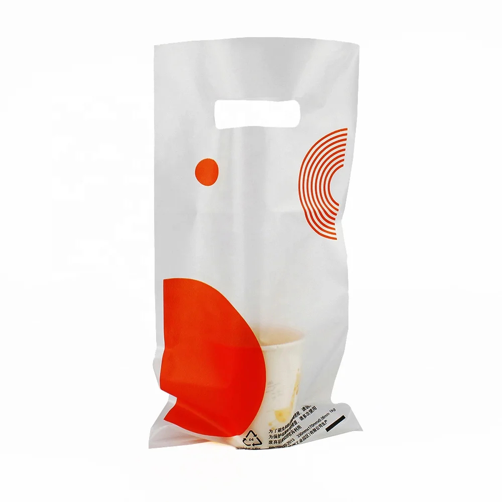 Customized Eco Friendly Food Grade Biodegradable Takeaway Bubble Tea Drinks Cup Carrier Plastic Bag TAKE AWAY PLASTIC BAG