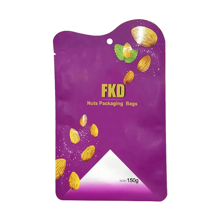 Die Cut Shaped Mylar Pouches Heat Seal Plastic Peanuts Pistachio Cashew Nuts Food Custom Packaging Bags for Snacks Dried Fruits