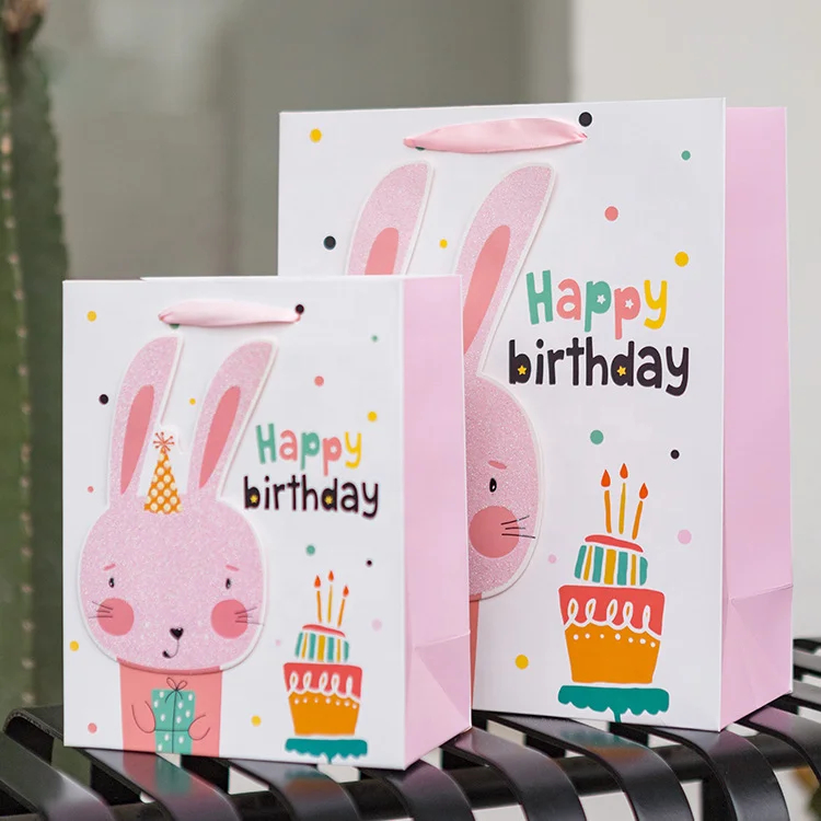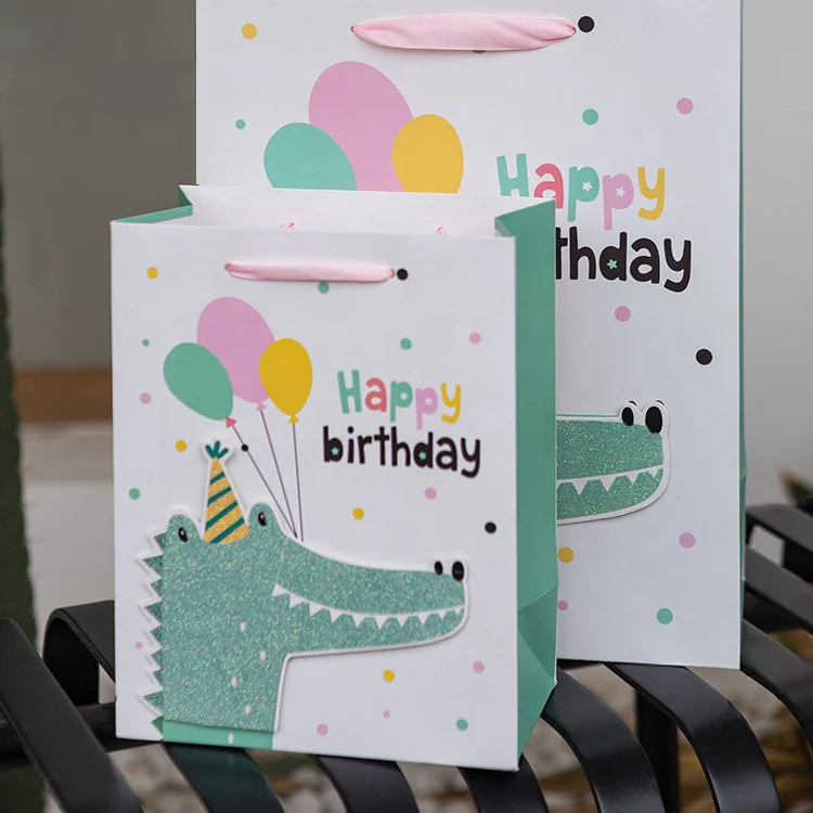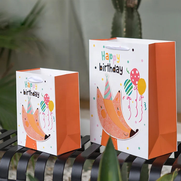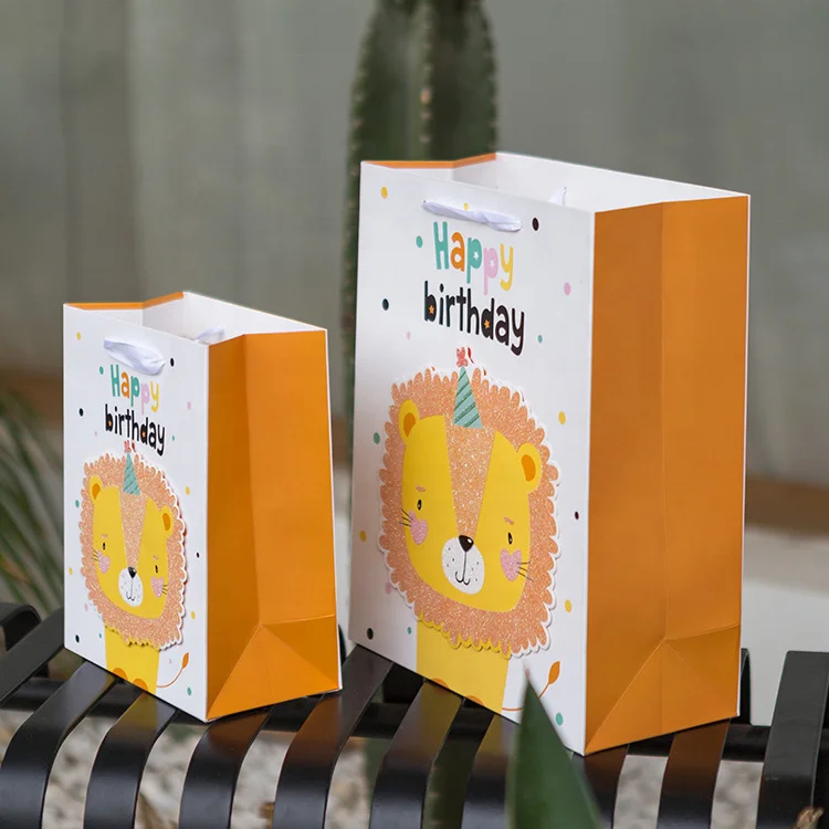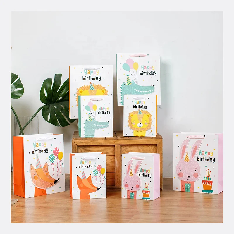 Eco-friendly Cute Glitter 3D Cartoon Animal Paper Bags Degradable Children Birthday Day Gift Packaging Paper Bags