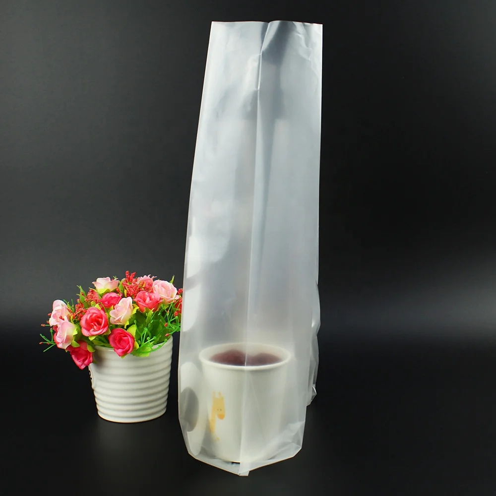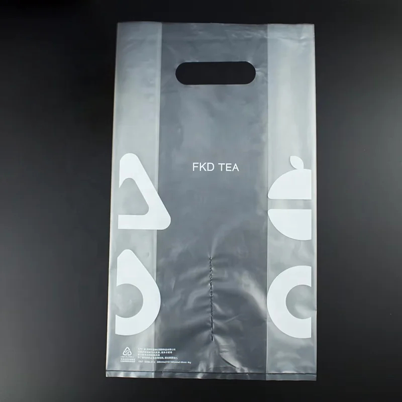 Factory Supply Custom Printed Plastic Bags Clear Takeaway Carrier Bag Transparent Coffee Milk Tea Cup Holder Bags