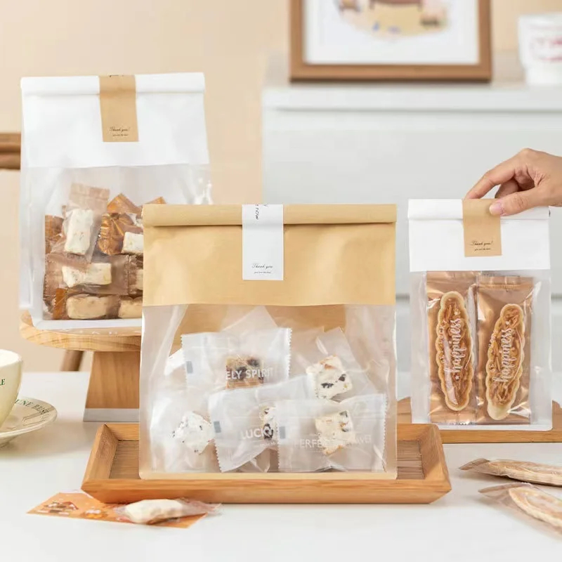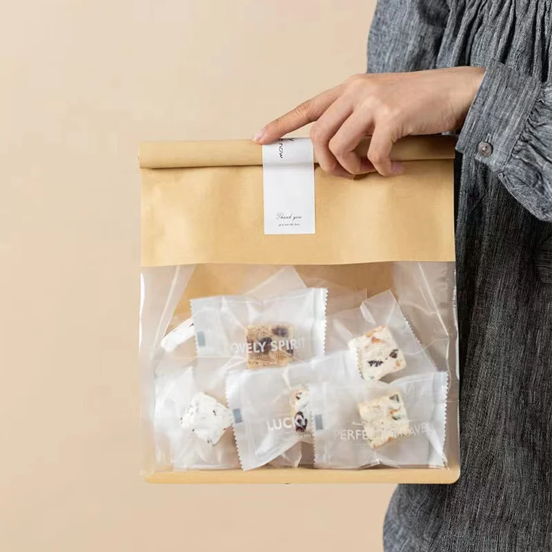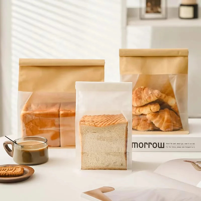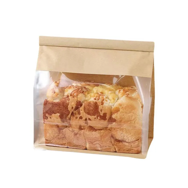 Factory Supply Wire Crimping Seal Kraft Paper Bag Backing Food Degradable Kraft Paper Bag Tin Tie Bread Packaging Paper Bag