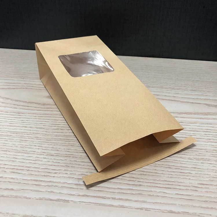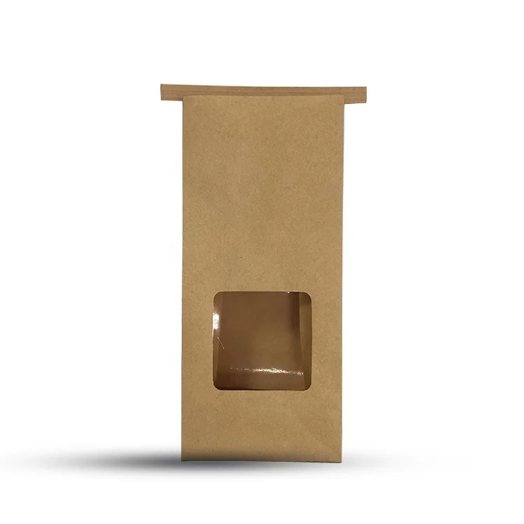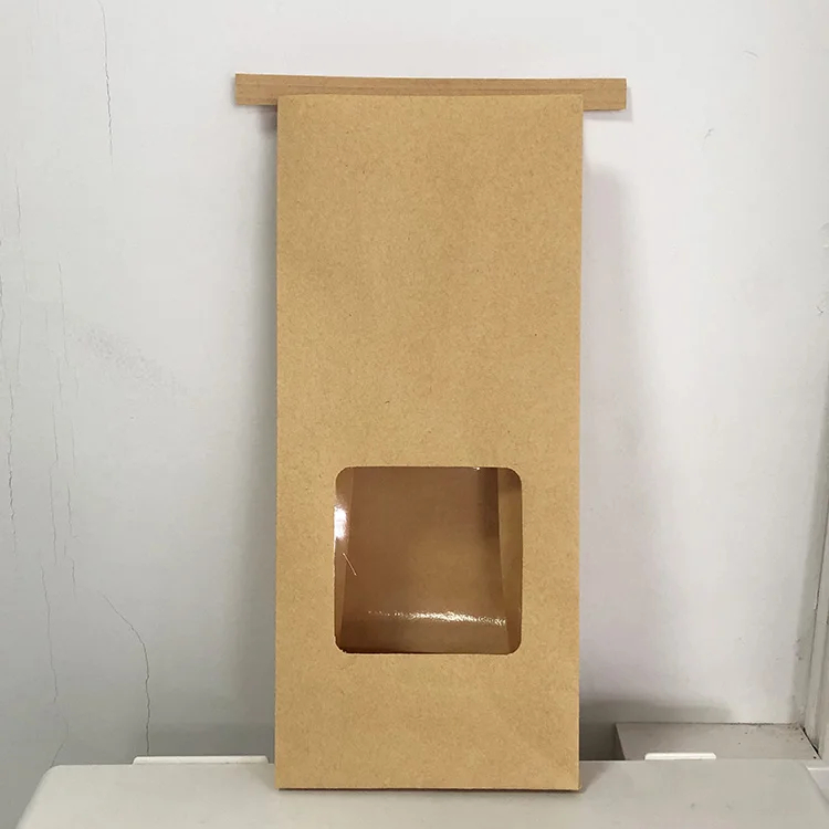 Stand up Brown Kraft Paper Pouch with Window Tin Tie Lock Bag