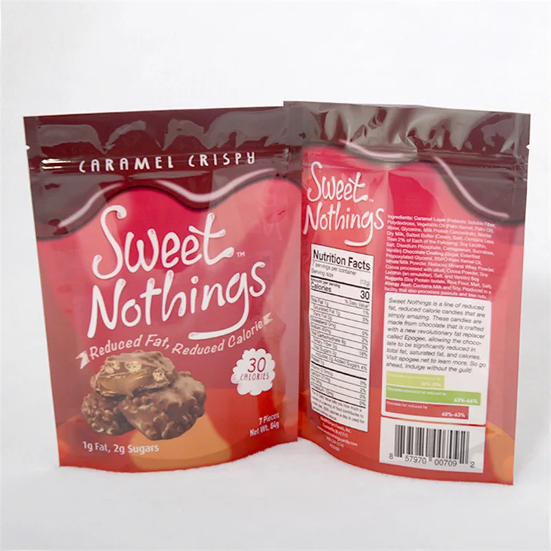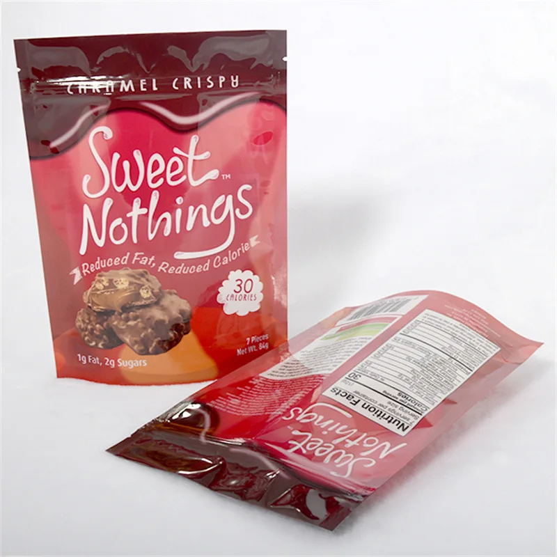 Food Grade Custom Printed Plastic Bags Resealable Ziplock Stand up Pouch Customized Caramel Crispy Food Packaging Bag