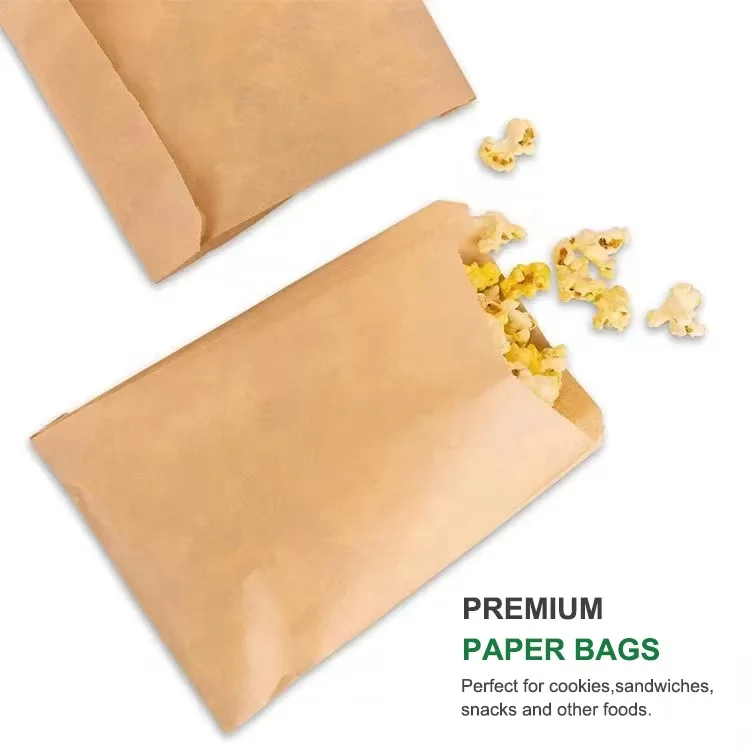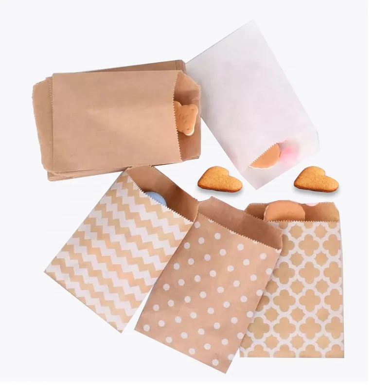 Kraft Paper Treat Pouch Flat Favor Bag Brown Sandwich Packaging Wax Paper Glassine Bag for Sandwich Snacks Cookie Popcorn Party