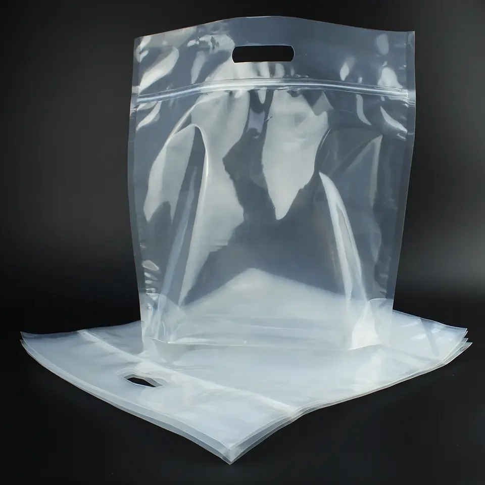 Large Transparent Ziplock Plastic Food Packaging Bags Stand up Plastic Bags with Handle Big Thick Clear Zip Lock Plastic Bag