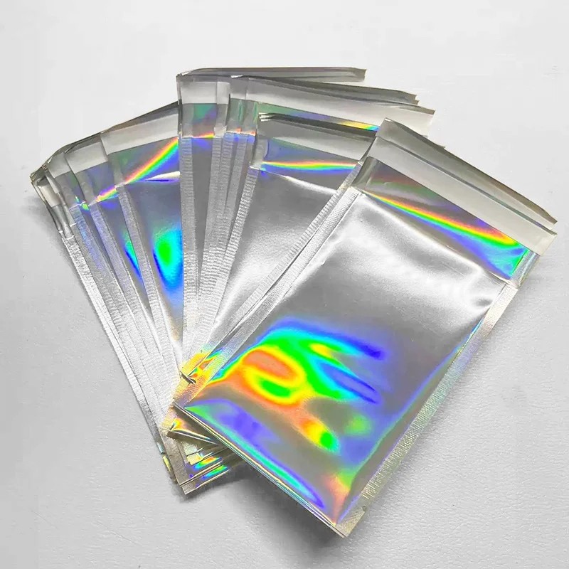 Laser Holographic Self-Adhesive Express Delivery Mylar Bag for Lipstick Clothing Accessories Cosmetics Packaging