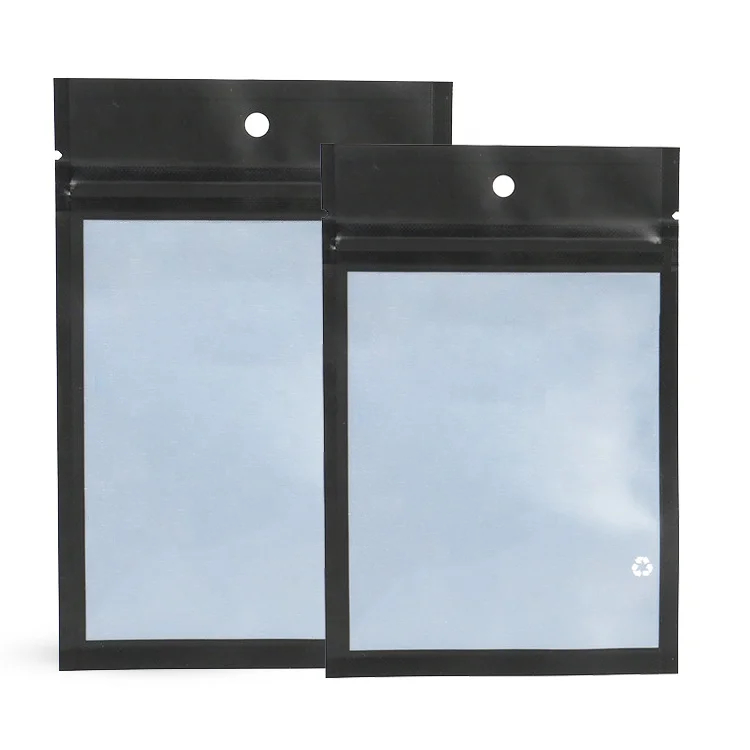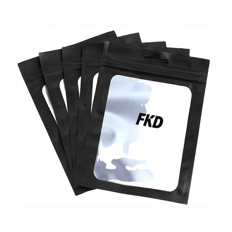 Matt Black Aluminum Foil Mylar Bags Custom Logo 3 Side Seal Zipper Pouch Zip Lock Plastic Packaging Bags with Transparent Window