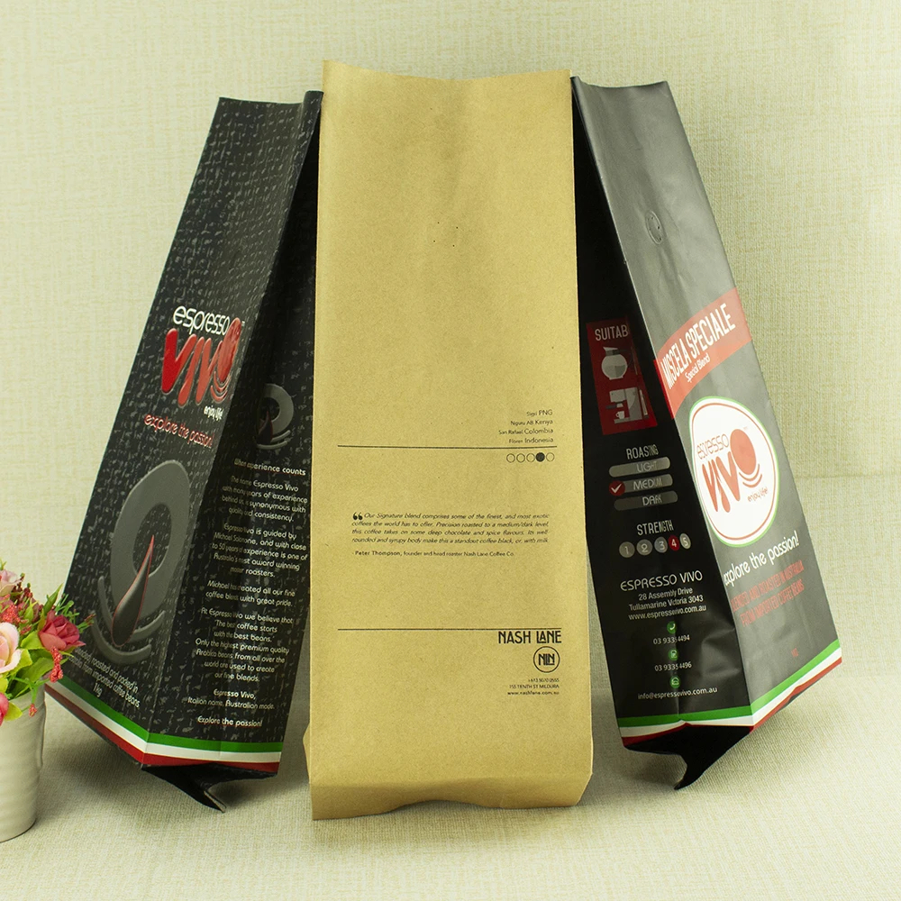 Matte Black Heat Seal Vacuum Food Storage Bags Side Gusset Aluminum Foil Mylar Coffee Packaging Bags with Valve